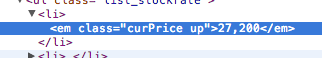 현재가 부분을 가져 오려면 HTML DOM 구조를 파악해야 합니다. 해당 페이지 소스 보기를 하거나 개발자 도구를 이용해서 현재가 부분의 마크업을 살펴보도록 하겠습니다.