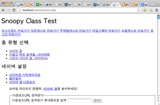 그럼 스누피 클래스를 이용해서 웹페이지 하나를 테스트로 크롤링 해 보겠습니다. 일단 test.php 파일을 하나 생성해서 HTML의 <body>태그안에 다음과 같은 코드를 작성해 보았습니다.